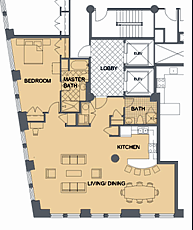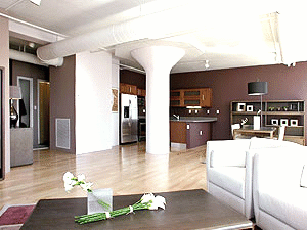 The building has a concrete frame with 8” thick slabs and 16” columns with flared tops which will contribute to the industrial feel desired in this type of unit. The finish package features hardwood maple flooring in public spaces, granite counters and hardwood cabinets in kitchens, and stone counters and tile at bathrooms. All construction is new, including HVAC, sprinkler and electric.