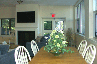 There are 35 units including two accessible ones. The program includes a series of balconies on the east end facing Plymouth Harbor, and spaces at ground level which can be used for small events. The community room itself has a fireplace and opens to an outdoor terrace.